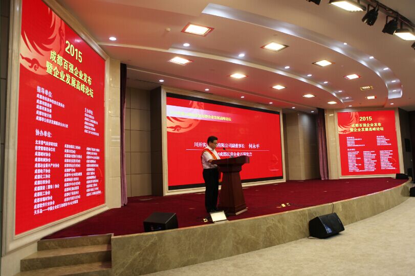 16日下午14點(diǎn),2015成都百?gòu)?qiáng)企業(yè)發(fā)布會(huì)暨企業(yè)發(fā)展高峰論壇在天府國(guó)際金融中心會(huì)議室拉開(kāi)帷幕,成都市經(jīng)信委等相關(guān)單位領(lǐng)導(dǎo)以及來(lái)自成都各大企業(yè)代表、電視媒體等三百余人參加了此次會(huì)議。集團(tuán)副董事長(zhǎng)代表集團(tuán)接受頒獎(jiǎng)并作為民營(yíng)企業(yè)代表發(fā)言。